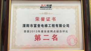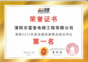 溧陽市富奎電梯工程有限公司 溧陽市富奎電梯工程有限公司是于二OO八年一月九日在原前身溧陽市電梯工程公司基礎上成立的,是專業(yè)從事電梯銷售安裝維修、保養(yǎng)的企業(yè)。是國家質監(jiān)總局頒發(fā)的特種設備安裝、改造、維修A級安裝許可證單位。公司組織機構實行總經理負責制,公司下設管理部、銷售部、安裝維修部、質安部、財務部,公司另外設十二個分公司:四川分公司、江蘇分公司、上海分公司、浙江分公司、湖南分公司、遼寧分公司、山東分...